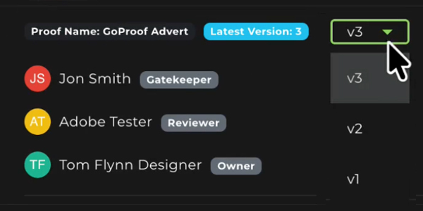 Stay confident you’re reviewing the latest creative files. With GoProof’s built-in version tracking, visual comparisons, and detailed activity logs, you can instantly identify what was updated, who made the change, and when it happened.