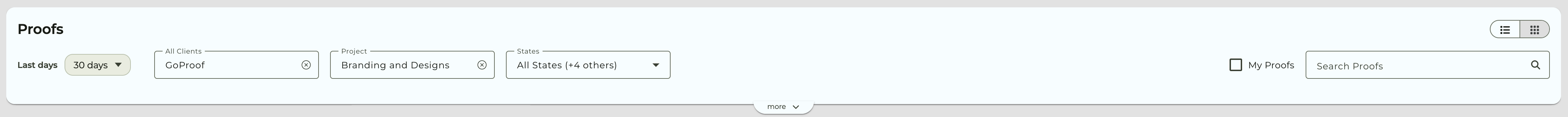 Use any of the toolbar options to help you narrow down the proofs you see in this view.