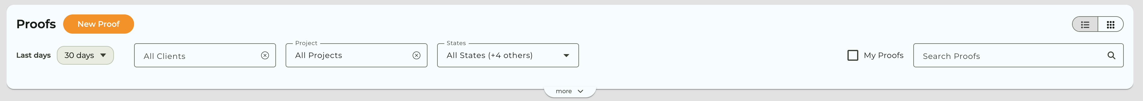 Use any of the toolbar options to help you narrow down the proofs you see in this view.
